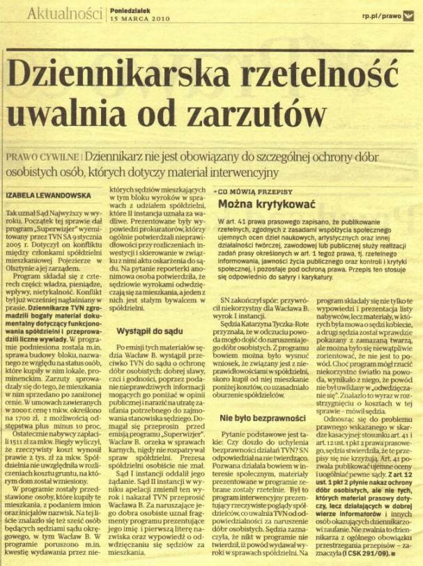 Artykuł z “Rzeczpospolitej” z 15 marca 2010 roku: