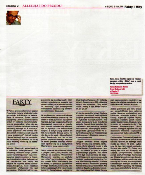 - Dziwię się, że sięgnięto po “Gazetę Finansową” ze względu na proweniencję osób, które w niej pracują. Mam na myśli Jana Pińskiego, który był za czasów Piotra Farfała – prawej ręki Romana Giertycha. Zresztą Jan Piński bardzo dobrze się zna z Romanem Giertycha. Kierował “Uważam Rze”, gdy wszyscy dziennikarze odeszli stamtąd i Cezary Gmyz napisał, że “nikt przyzwoity nie powinien pracować w tej gazecie”. Wtedy objawił się właśnie Jan Piński, który został redaktorem naczelnym. To w tej gazecie pisał Stanisław Tomasz Bortkiewicz, który jest właśnie odpowiedzialny za reformę w TVP. Zbyt dużo jest tu zbiegów okoliczności… – stwierdziła Dorota Kania na antenie Radia Wnet.