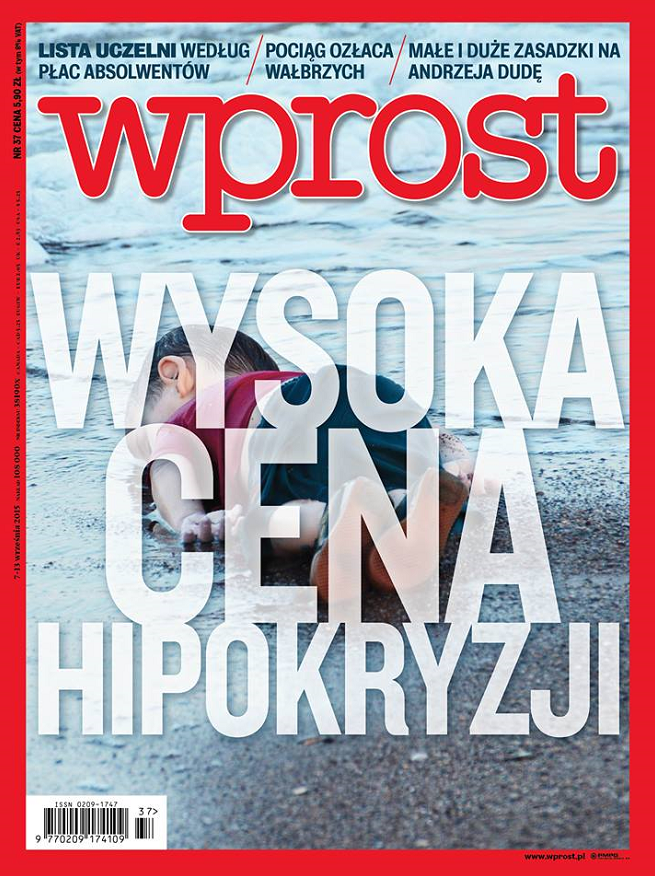 Redakcja tygodnika “Wprost” (AWR “Wprost”) umieściła na okładce zdjęcie ciała trzyletniego Syryjczyka, które w ubiegłym tygodniu Morze Egejskie wyrzuciło na brzeg plaży w tureckim Bodrum. Dziecko utonęło podczas przeprawy do Grecji. – Czasem pokazanie okrutnej prawdy jest nie tyle odwagą, co obowiązkiem redakcji – wyjaśnia portalowi Wirtualnemedia.pl Tomasz Wróblewski, redaktor naczelny “Wprost”.