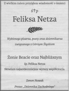 ZMARŁ FELIKS NETZ – PISARZ, POETA,