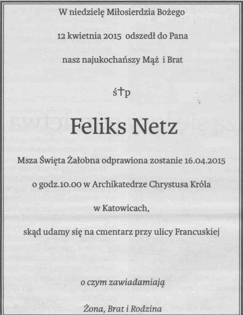 Feliks Netz nie żyje